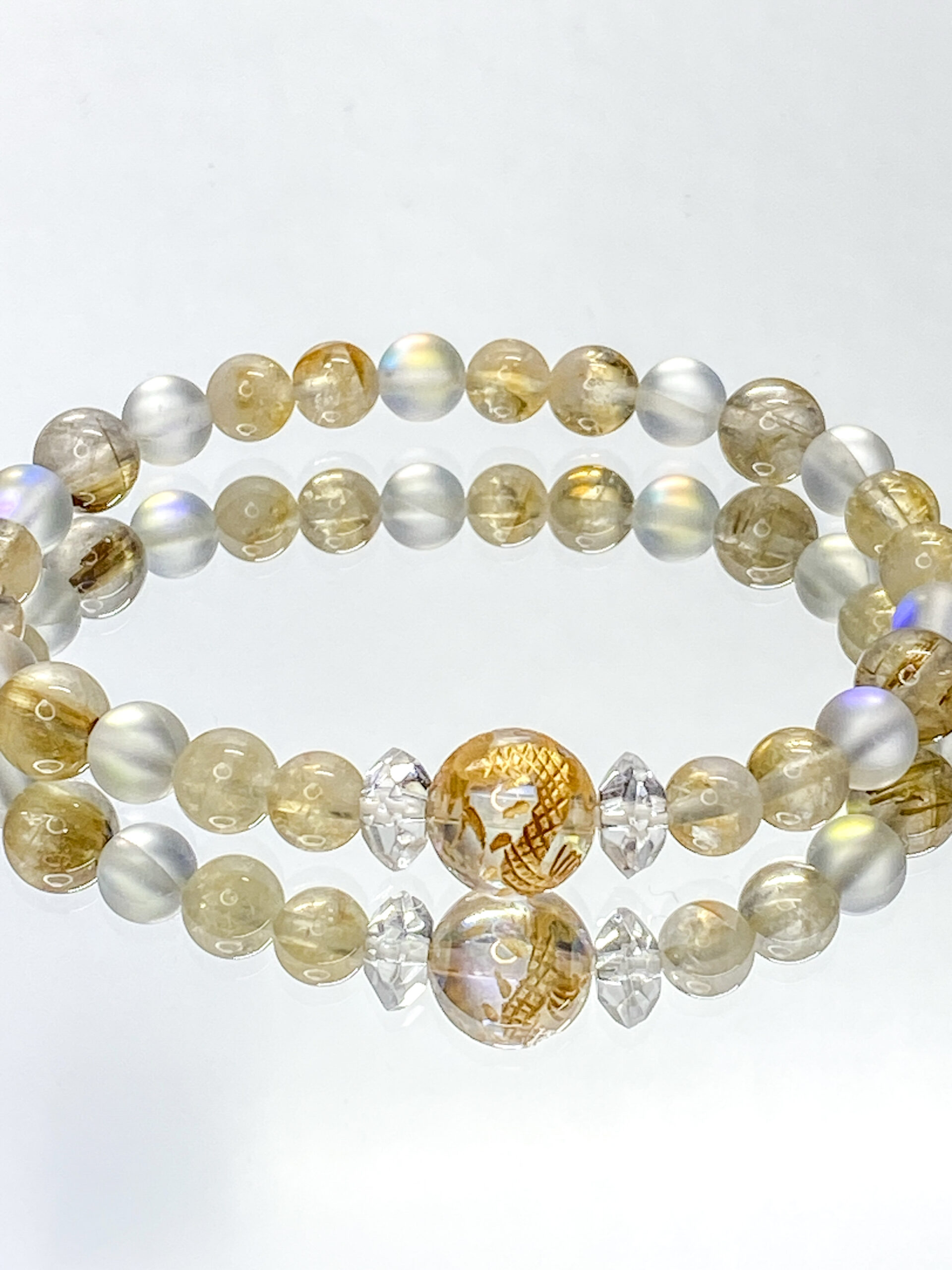 オーロラクォーツ(五爪龍)×タイチンルチルクォーツ×バイカラーシトリン×ルナフラッシュ 天然石ブレスレット